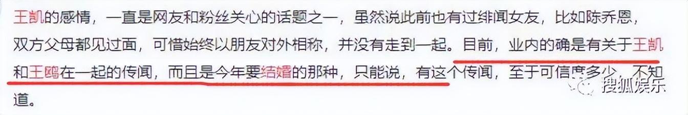 而这次爆料说两人要结婚的绯闻中,也掺杂着王凯和宋茜疑似错过合作的消息。