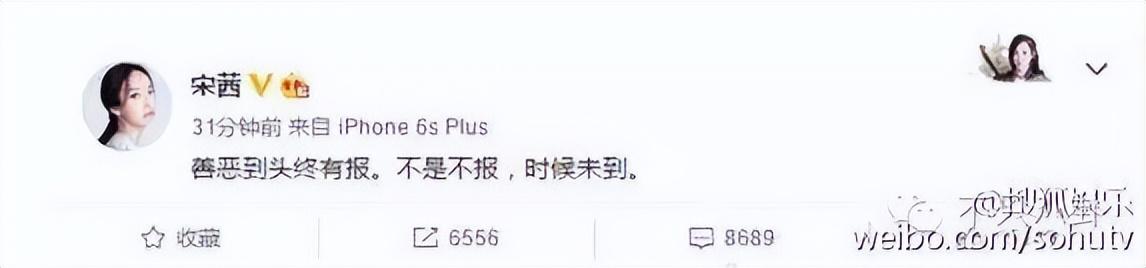 很快,宋茜也不甘示弱发了微博:“善恶到头终有报。不是不报,时候未到。”宋茜不光发了这条微博,更取关了杨洋的经纪人。