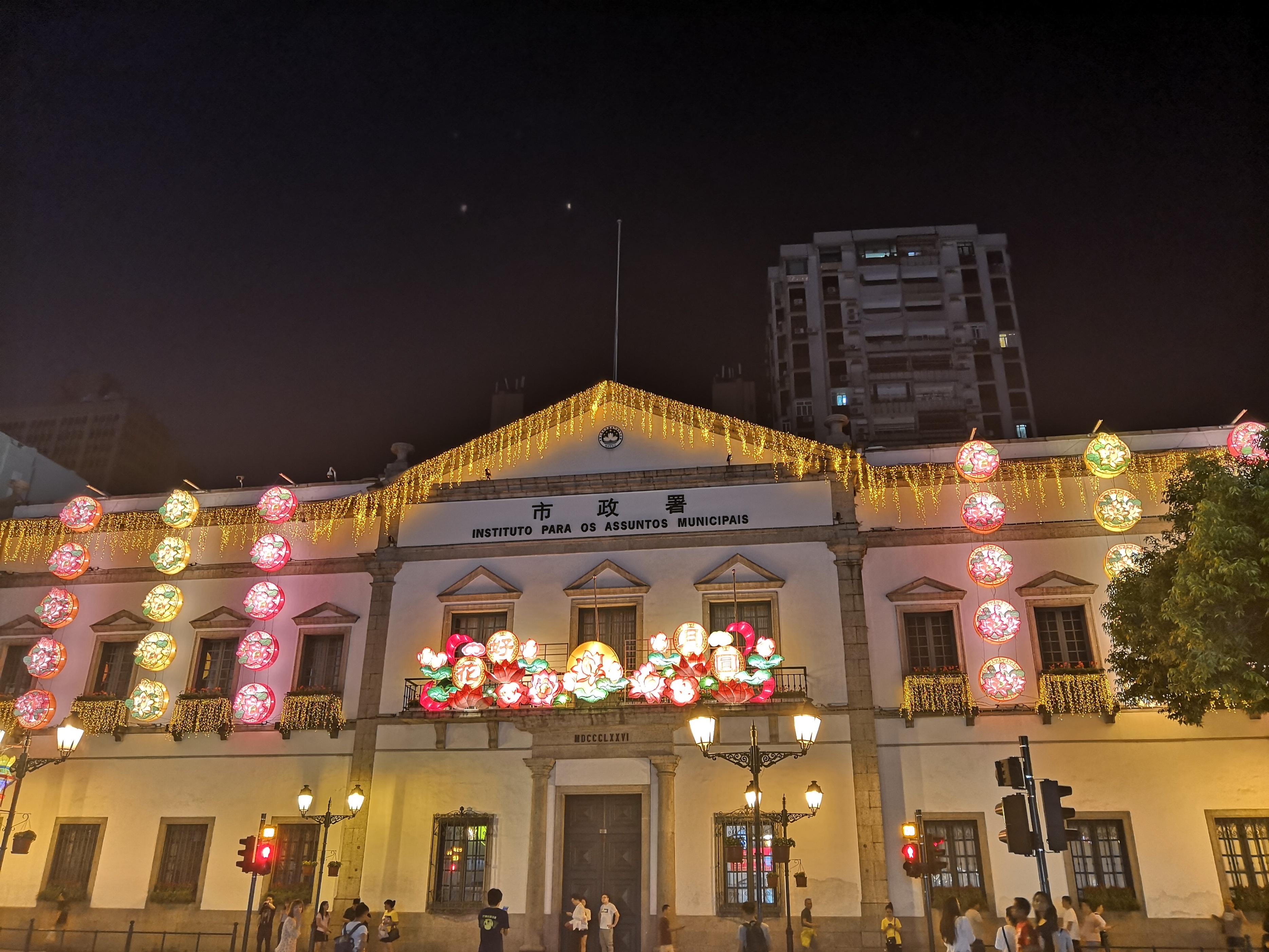 衔接上第二次去澳门是在夜晚,去澳门塔看了烟花后直接坐公交到澳门市政署,也就是民政总署大楼,位于澳门历史城区,南欧风格的建筑雅致古典,不过晚上不开门所以也无缘进去参观,不过发现了市政署旁的议事厅广场才是最值得游览的地方。