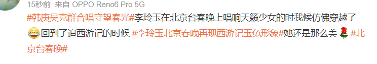 北京卫视开场就是一个大惊喜,特邀李玲玉老师再现了《西游记》中的玉兔形象,还唱了《天竺少女》,网友直呼爷青回!
